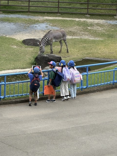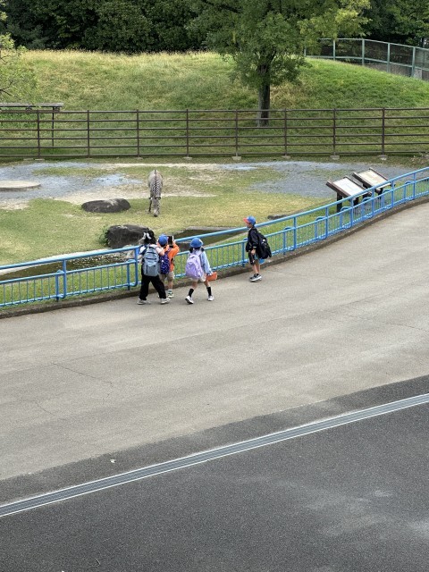 千葉市動物公園に到着し、早速見学が始まりました。少し風が強いですが、みんな元気に見学しています。