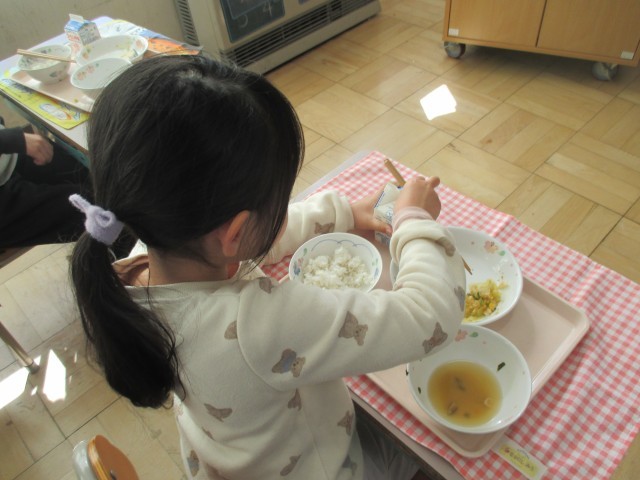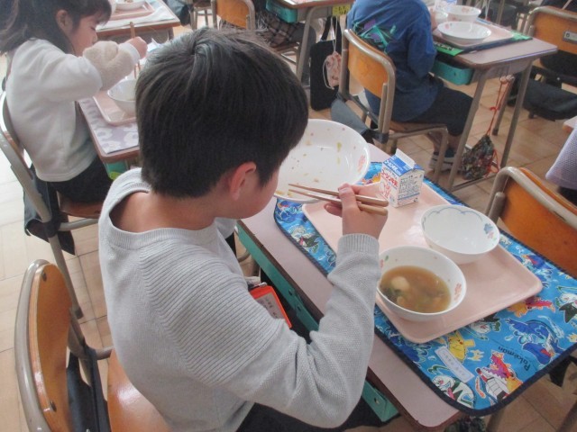 今日は3学期の給食始め。鏡開き献立ということで、白玉が入ったお雑煮が出ました。久しぶりの給食。放送で鏡開きの話もあり、「おもち食べたよ」という声もあちこちで聞かれました。3学期も心にも体にもおいしい給食をたくさん食べてほしいです。