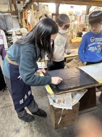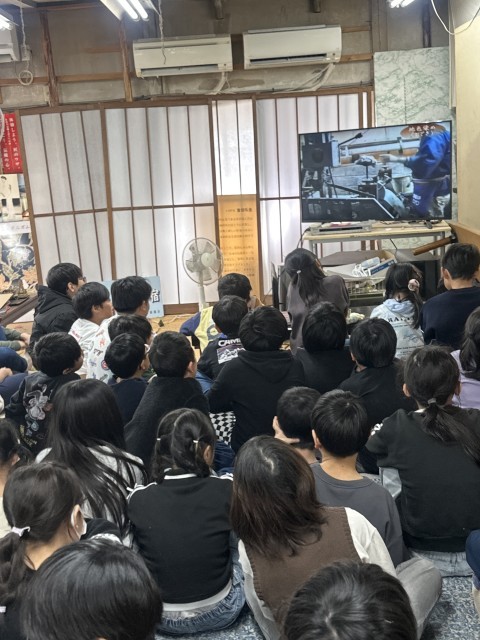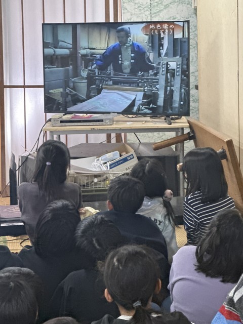 東京染めものがたり博物館でお話しを聞いています。この後、染めもの体験をします。