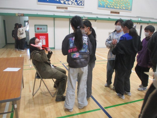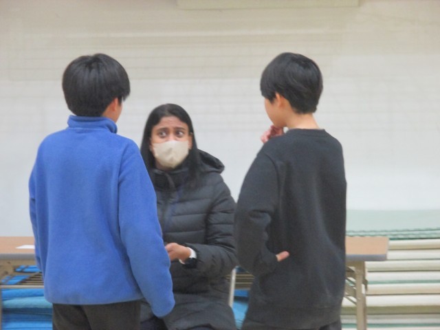 今日は、外国の方々と英語を使ってコミュニケーションをとる「イングリッシュキャラバン」の日でした。高学年の子どもたちがクラスごとに体育館でゲームを楽しんでいました。体育館のあちらこちらに貼られたカードを探しながら、英語での指示を聞きとったり、クイズに英語で答えたり。最初は恥ずかしがっていた子どもたちも、知ってる単語や表現を駆使して、身振り手振りを加えて、相手に伝えていました。「自分の話した言葉が通じた」経験が、上達の原動力だと思います。どの子も生き生きした表情で活動していました。