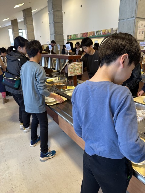 2日目の朝食は、パン、ご飯も選べるバイキング。しっかり食べて、今日のスキーに備えます。
