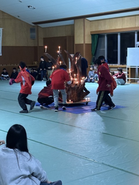 夕食後は、キャンドルセレモニーを行いました。今日まで、レク係が準備を重ねてきました。