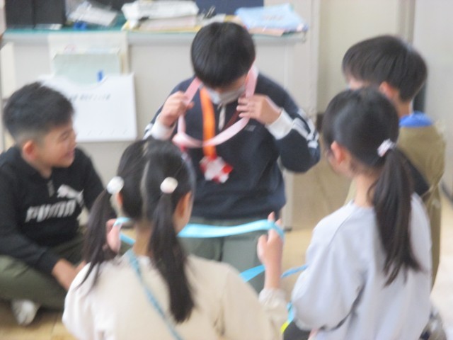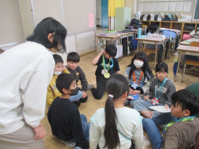 今日は今年度最後のなかよし班活動でした。2,4年生が互いのクラスで交流をしました。今日は、2年生からのスペシャルプレゼント「感謝のメダル」が4年生に送られました。心を込めて作ったメダルを、恥ずかしそうに4年生の首にかけてあげる2年生。それでも感謝の気持ちを伝えようと一生懸命な姿が、素敵でした。またメダルをもらって照れたような表情の4年生でしたが「3年生になっても、頑張ってください」など、しっかりした口調で話す姿は、高学年らしさが感じられました。今年度最後のなかよし班活動。心温まる活動の様子でした。