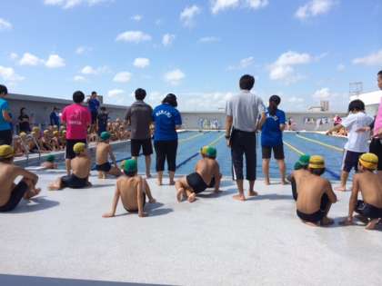 9月2日、5年生は春江小学校で行われている水泳大会に出場しています。どの子も全力で泳いでいます。