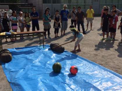 お父さんの会スイカ割り 公開日 2015/09/13 更新日 2015/09/13 できごと 9月13日、お父さんの会がスイカ割りをしてくれました。みんなとても楽しそうでした。ありがとうございました。 いいね(0)