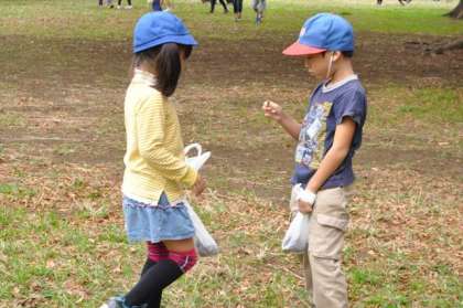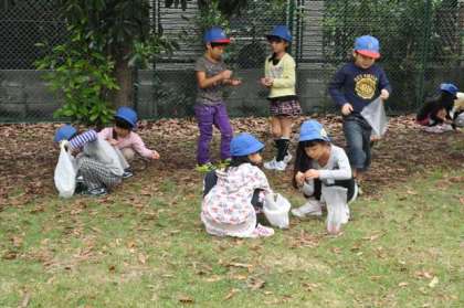 10月24日(月),学校の近くの公園へ,どんぐりを拾いに行きました。「あっ,ここにもおちてる!」と,たくさんのマテバシイを集めて,学校に持って帰ってきました。生活科の学習で活用していきます。