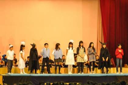 いよいよ明日は学芸会。11/10(木)の集会では,各学年の代表の児童が,自分たちの劇の紹介をしました。衣装を着たり,劇の一場面を披露したり,それぞれ工夫した発表で,学芸会が楽しみになりました。