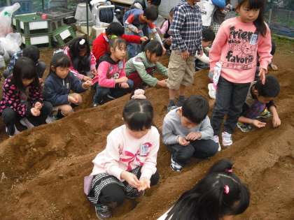 11月18日(金) 今日は1年生の小麦の種まきのお手伝いです。かわいい1年生がていねいに小麦をまきました。畑にあるダイコンやニンジンをぬいて見せてあげたらみんな大さわぎでした。緑の中で、汗をかき・・・もちろんおしゃべりも楽しいです。農園ボランティア(ハッピーグリーン)は随時参加できます。お待ちしております。