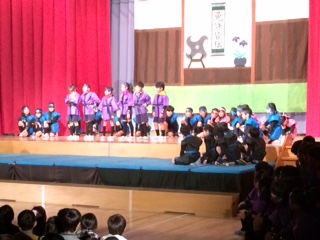 2年生にんじゃへの道、4年生ほんとうの宝ものは、6年生夢から醒めた夢でした。心を一つにして劇を作り上げました。
