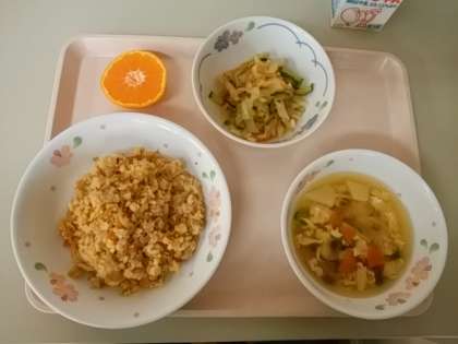 大人気のキムチチャーハンと一緒に、食べやすい献立が出来ていました。