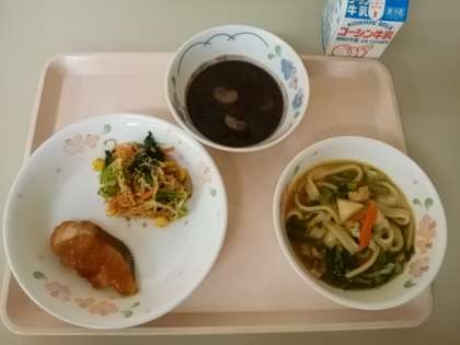 三学期始めは、七草と鏡開きを合わせた行事食です。