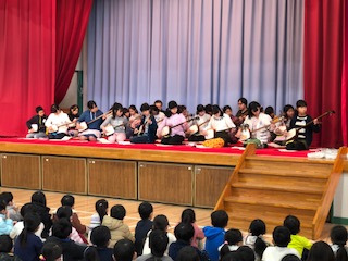2月9日、三味線発表集会がありました。一年間練習してきた成果を全校児童に発表しました。とても素晴らしい演奏でみんな真剣に聞いていました。