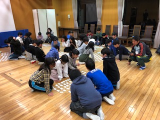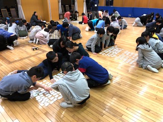 3日目の夜は、百人一首大会をしました。源平合戦で行いました。みんな真剣に札を取り合いました。