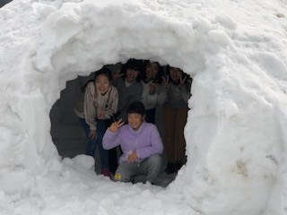 上田の里でお昼を食べた後、近くのかまくらを見に行きました。そして、少しはやく帰路につきました。