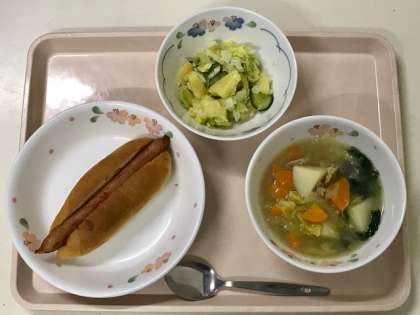 今日の給食はみなさんが食べやすい献立を考えて作りました。