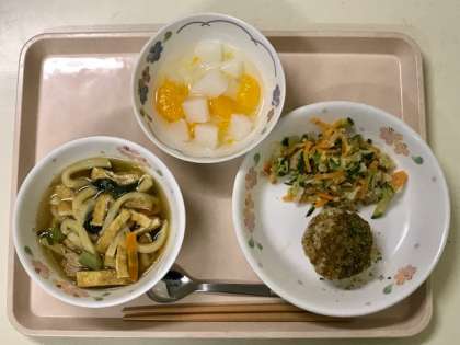 しっかりだしの旨味がするうどんは、一年生でも食べやすいようにうどんも短く切りました。