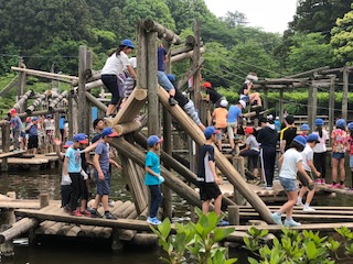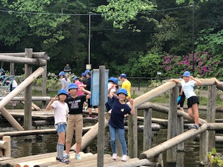 なかなか難しいアスレチックがあります。工夫してクリアできたときの嬉しそうな笑顔がとても素敵です。