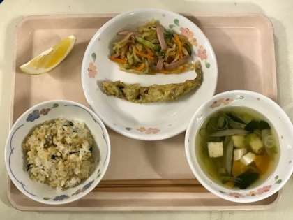 さて今日の給食はししゃもに青のりの衣をまとわせて天ぷらにしました。
