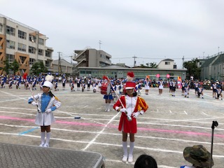 午後は、6年生と金管バンドによるフィールドドリルでした。