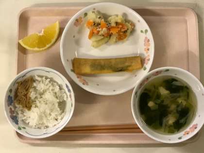 今日は一年に一度の献立、ししゃもをしその葉とチーズと一緒に春巻きの皮で巻いてあげたしそ巻きです。