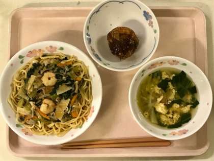スープには玉子と青梗菜が入りました。