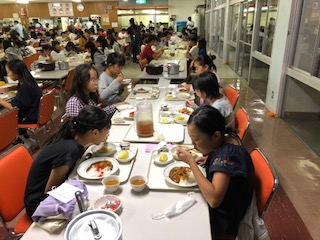 1日たくさん活動して、おなかがすいているのでおかわりをしていました。