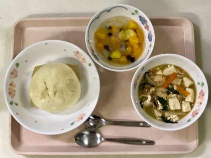 煮物はたくさんの豆腐とえびを野菜のあんかけで煮ました。