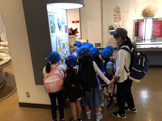 はじめに自然博物館を見学しました。白いヘビがいて、びっくりしました。みんな興味をもって見学しました。