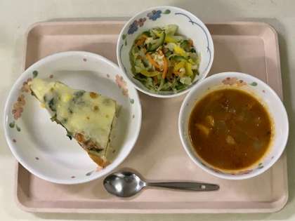 ゴロッとしたとり肉が入ったトマト風味のシチューは、濃厚な味わいです。