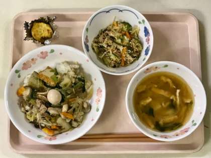 今日の和え物はツナと茎わかめが入り、歯ごたえも楽しく出来上がりました。