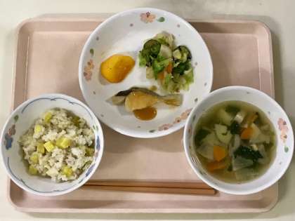 今日は旬の食材の、さつまいもと柿を献立に使いました。