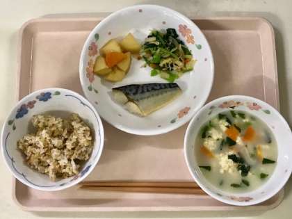 今日の献立は、ご飯におかずが三品と汁物がついて、いわゆる、一汁三菜の献立と言えます。
