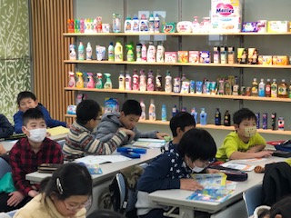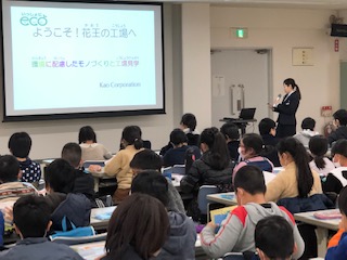 午後は花王川崎工場を見学しました。はじめに学習室で勉強しました。環境のためにみんなができることについて学びました。