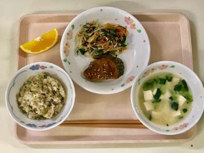 付け合わせは鉄分たっぷりのひじきの和風サラダです。