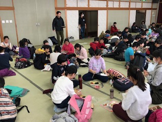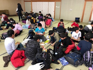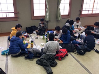 渋滞のために宿舎到着が少し遅れてしまいましたが、おうちの方に作っていただいたお弁当を嬉しそうに食べています。