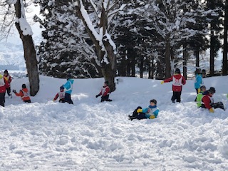 カンジキ体験のあと、少し雪遊びをしました。雪合戦や雪と戯れて遊びました。