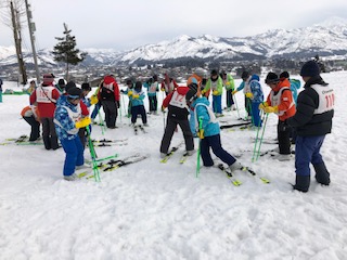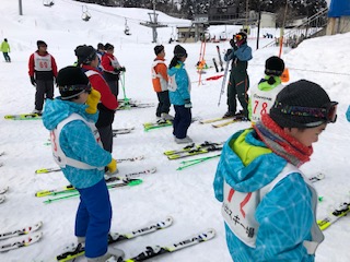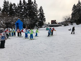2日目の午後は、いよいよスキーの講習です。はじめての子が多いので、スキーの板の付け方から、丁寧に教えていただきました。