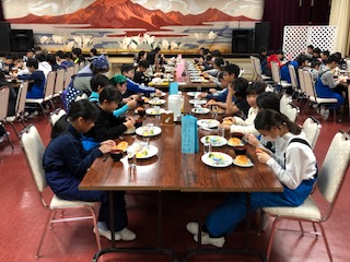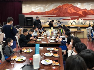 3日目の朝です。朝食はロールパン、オムレツ、マカロニサラダ、ハムです。パンは好きだけど、こしひかりがよかったと言っている子もいました。こしひかりファンになってしまったようです。