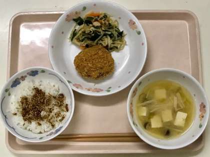 ご飯の上には、じゃこや昆布など歯ごたえのある具材で作ったふりかけがかかりました。