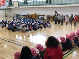 2月19日、今日は南篠崎保育園の園児を招待して、1年生が遊びの広場を行いました。