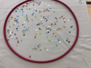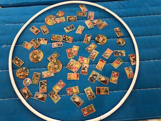折り紙、けん玉、おはじき、メンコ、輪投げ、1年生体験コーナーなどを準備しました。1年生が園児を上手に遊ばせてあげていました。
