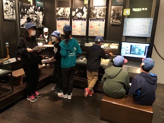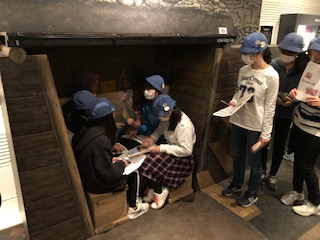 防空壕、闇市、黒電話などが展示されていて、子供たちは一生懸命に見学していました。