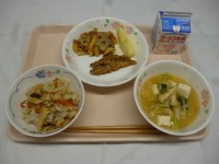 3日目の夕食は、とんかつと焼売です。スキーをたくさん滑って、おなかペコペコです。みんなモリモリ食べています。