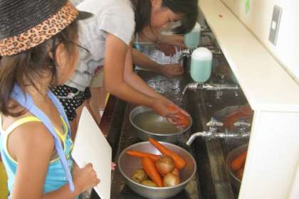 夕食はカレーライスと豚汁をみんなで作りました。お父さん・お母さんに手伝ってもらいながら,みんなで作ったカレーはとてもおいしかったです。