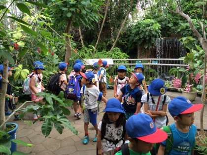 熱帯植物館の中は、きれいなランの花やカカオの実などがありました。