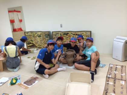 たいけんれきはくコーナーでは、着物のたたみ方や土器のパズルなどが体験できました。
