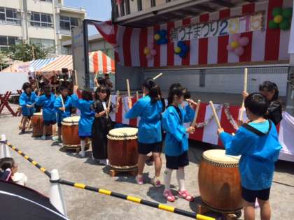 7月11日、南っ子まつりを開催しています。オープニングに金管バンドクラブの演奏と和太鼓クラブの演奏、ダンスの発表がありました。みんなとても楽しそうです。