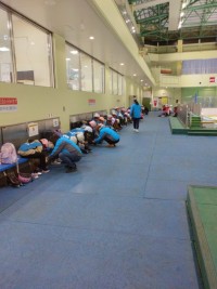 スポーツランドに着きました。準備運動をして本番に備えます。