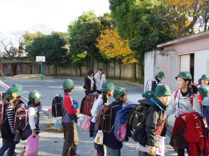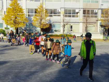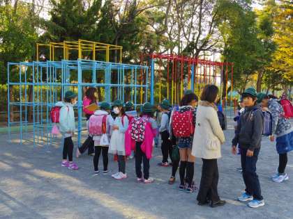 学期に1回の集団下校の日です。4年生が作成した安全マップをもとに、登下校時の安全について話し合いました。集団で下校しながら、保護者の皆さんと通学路の安全を確かめることもできました。