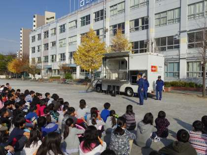 12月の避難訓練は、地震発生後に火災が起こった想定で行いました。季節が冬となり、地震による火災に対応するための訓練でした。また、起震車体験も行いました。日頃からの備えが大切なことに改めて気付きました。